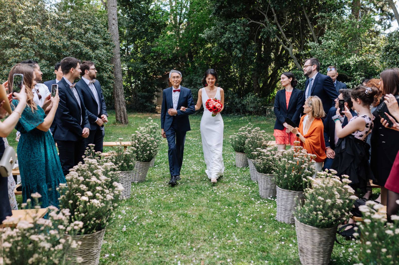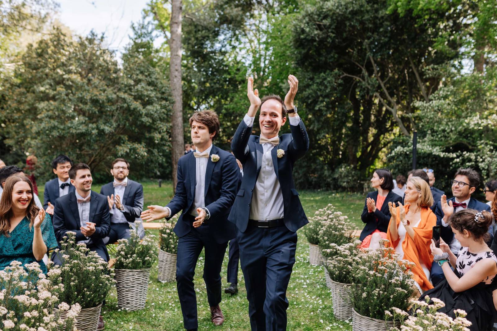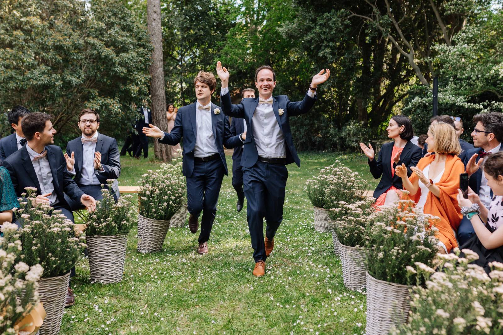 Evidemment, vous pouvez organiser l'ordre du cortège comme bon vous semble, et intervertir les entrées. Si vous souhaitez commencer par le marié au bras de sa maman, puis les témoins, puis terminer par la mariée au bras de son papa, pas de soucis! C'est votre grand jour, c'est vous qui décidez.