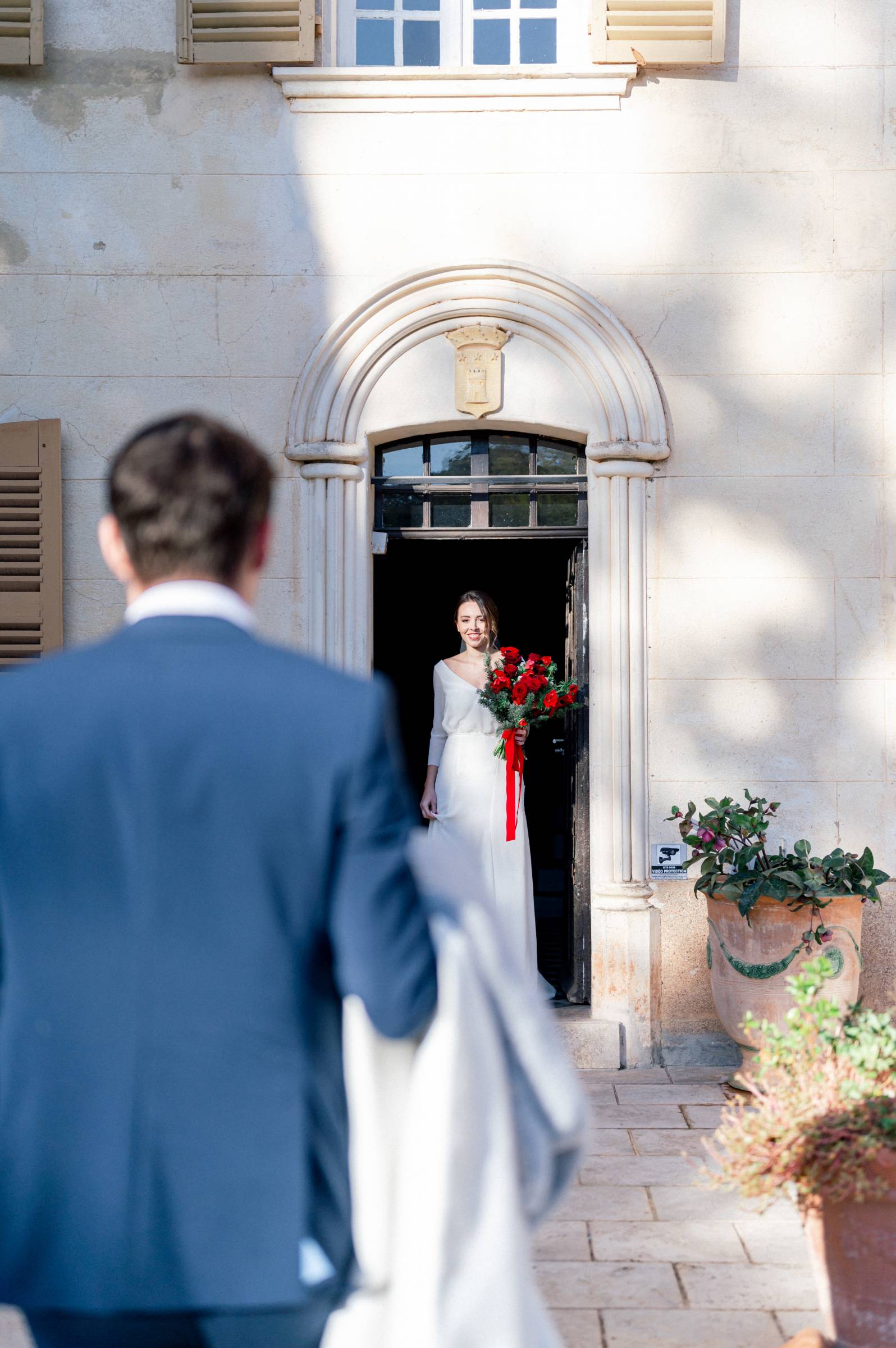 Découvrez les premières images de ce sublime mariage d'hiver: une cérémonie laïque célébrée dans le somptueux château de Taradel, dans le 83.