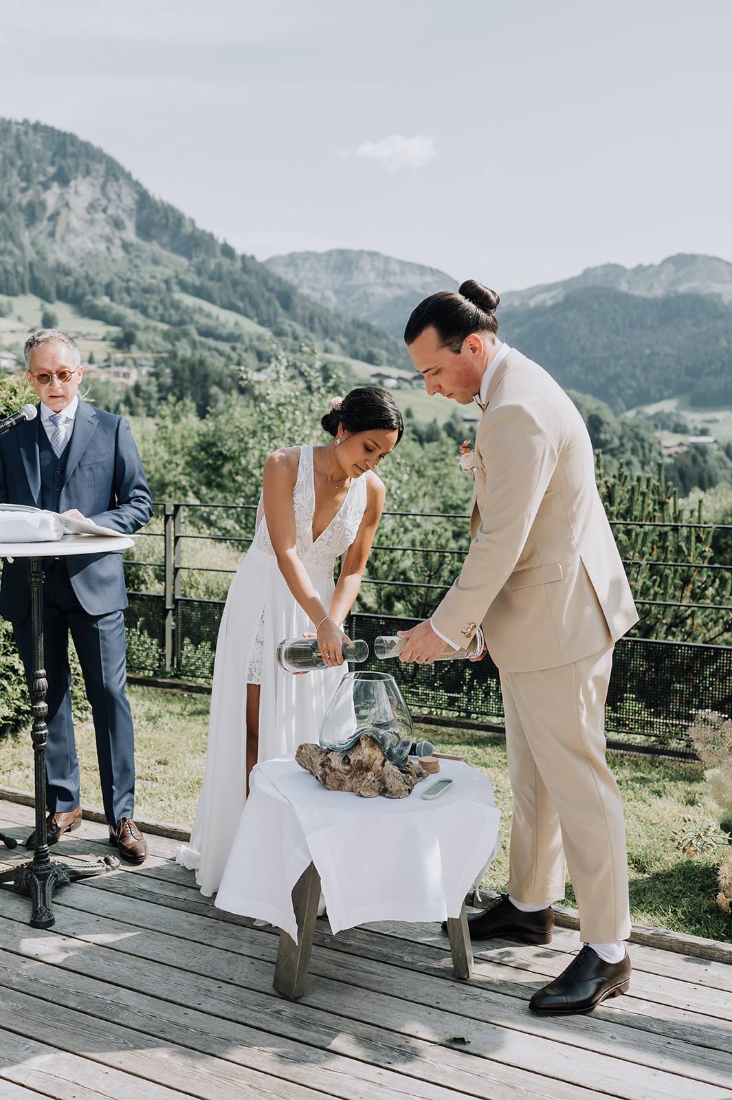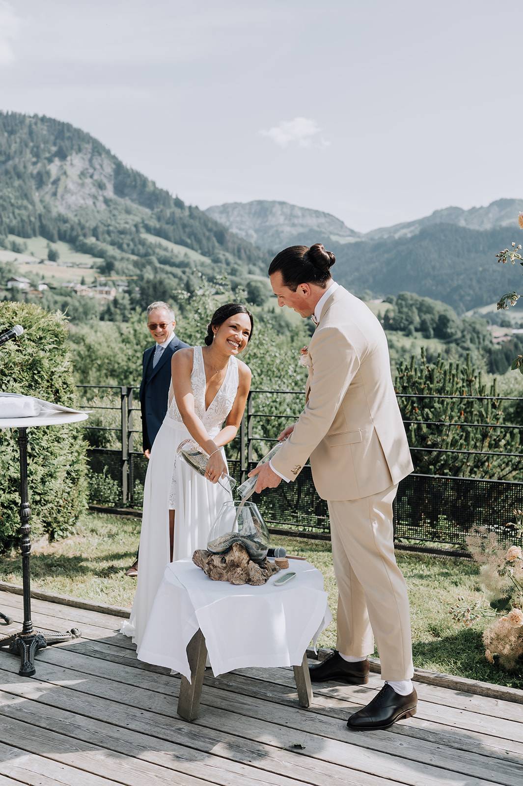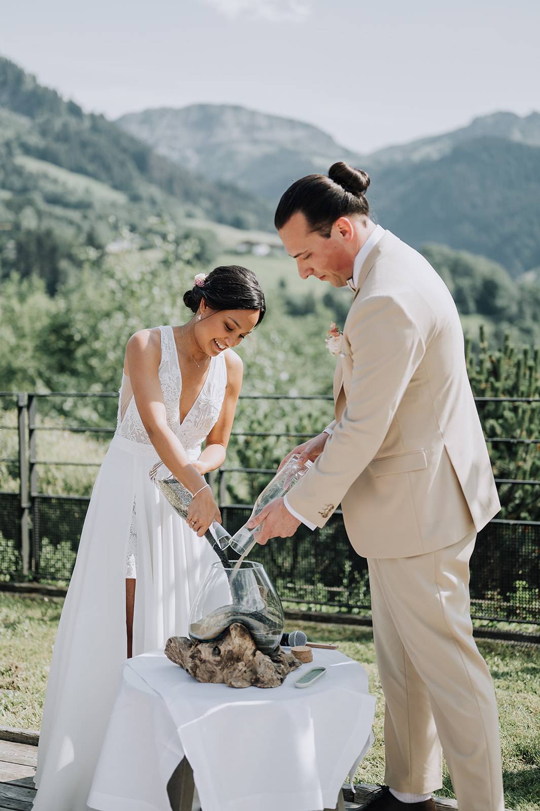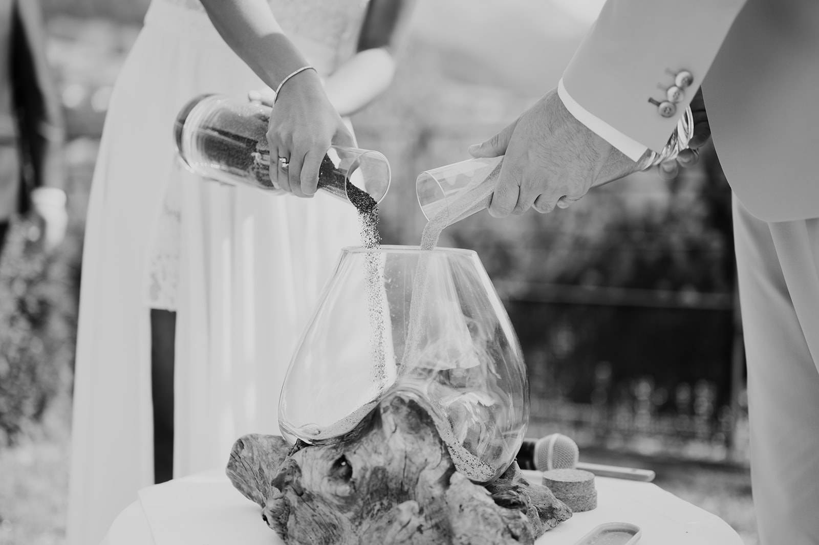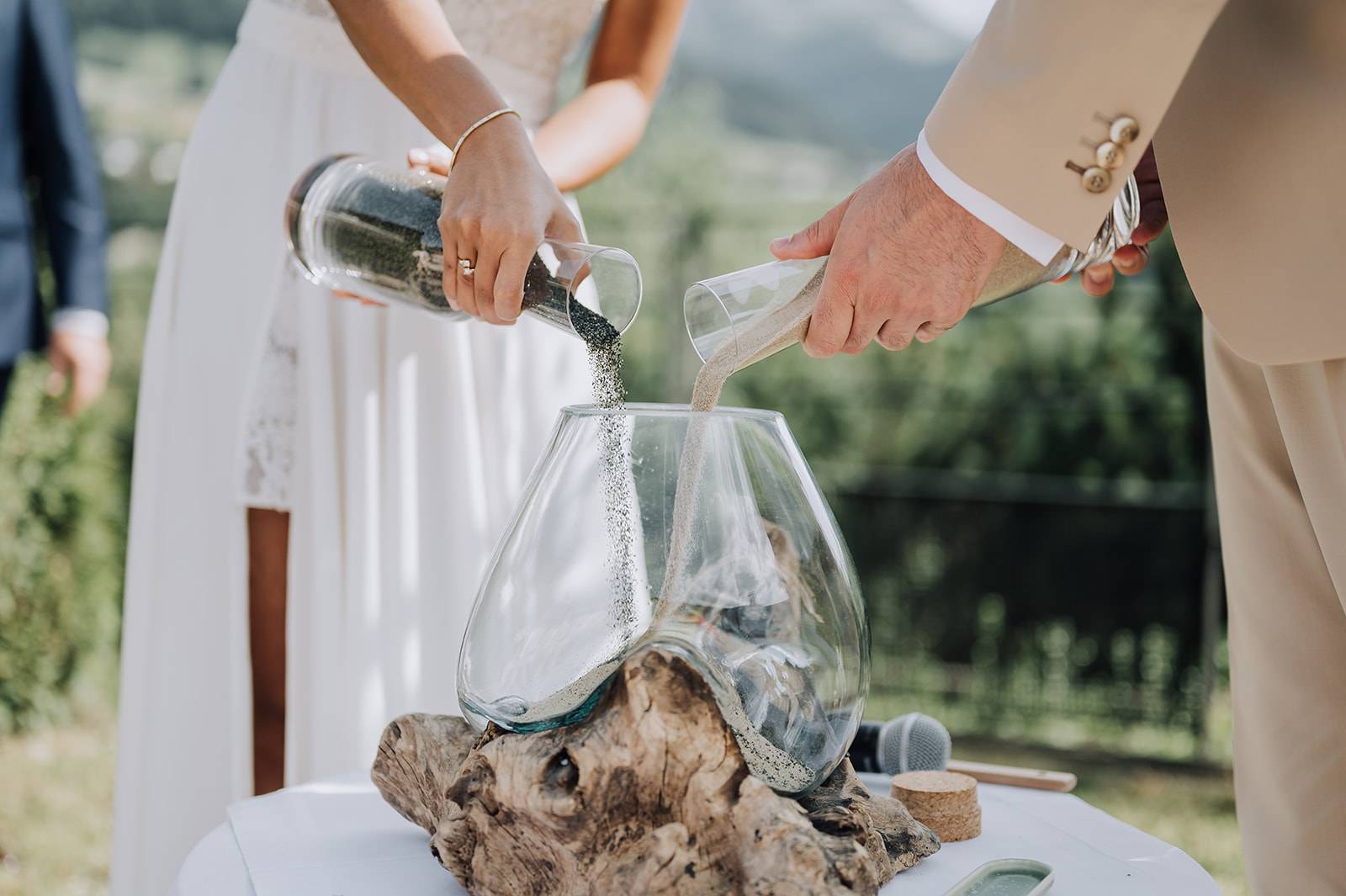 Les mariés aiment beaucoup intégrer le rituel du sable à leur cérémonie laïque, car il peut se prêter à des interprétations différentes en fonction de votre couple et de vos envies!